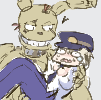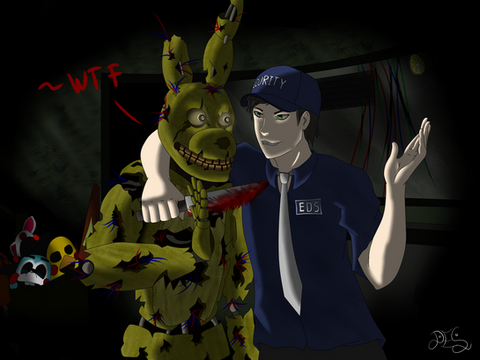 suggested bymy vision of Springtrap (or Spring as I call him) is a really nice guy, so if circumstances had been different in his time of Fazbear Fright. then the biggest worry the guard would have is the smell and horrific look of when Springtrap would come into the office and want a hug.
