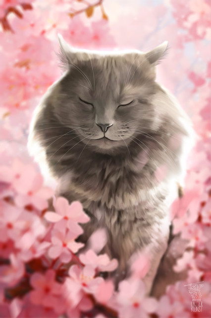Красиво) Немного странная работа с шерстью, зато фон интересно сделан)
