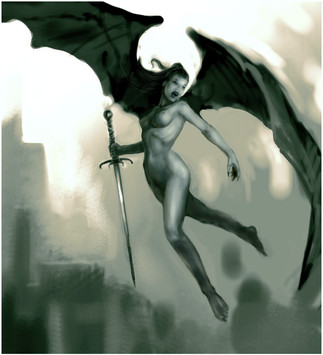 Yowza, that left eye is whack! The soft addition of color on the left and right really adds to it. Great blending you've done!