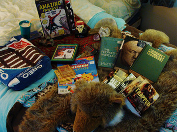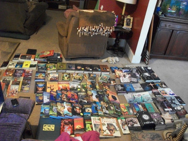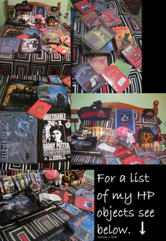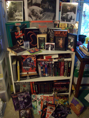 My updated collection is located here: [link]This is my entire collection of vampire related stuff. I was bored so I thought I'd line it all up and see what it amounted to. Conclusion: I can't buy anymore things they won't fit on my bed LOL!
