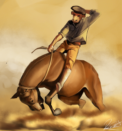 Commission forEngineer riding a llama buckaroo style.