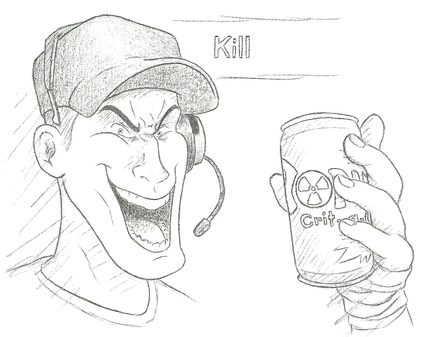 I like this piece, like always, and man, thats some nice liquid stuff there, the sweat, the crit-a-cola, the blood. The crit-a-cola itself looks amazing, almost like you copypasted it from a screenshot.