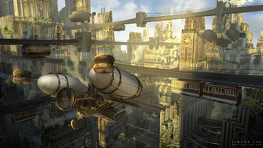 this is awesome - I like that it is so high up in the sky and the perspective makes it really interesting. I feel reminded of Bioshock Infinite.