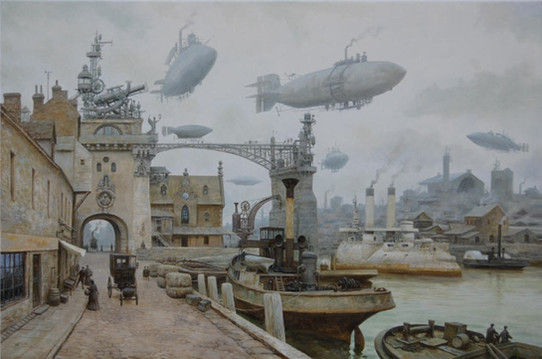 #dock #steam #steampunk #summer #old #city #cityscape #zeppelin