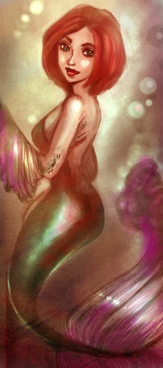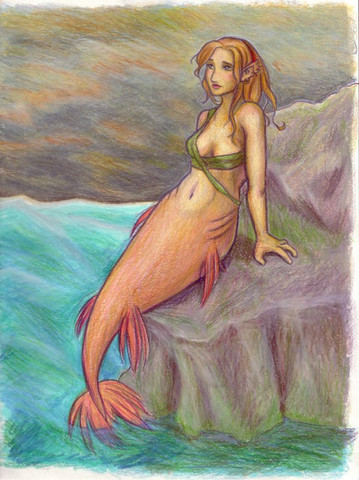WOW! This piece is... AWESOME! I love everything about it! It's so original (the drawing style) and the colouring is amazing! Her bottom half is probably the best mermaid tail/fin-thing I've ever seen!