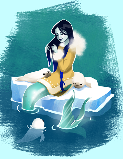 Oh, according to the legend, her father chopped her fingers off using an oar. Ouch. Her fingers fell into the sea and created whales, seals, and Inuits.
