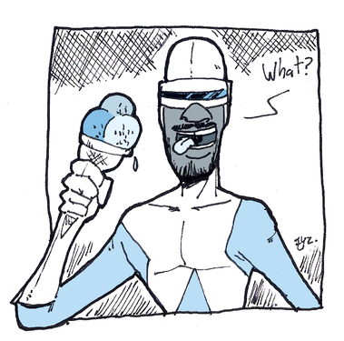 It's Froooozoone! He's here to save the day, and prove that I have on-again off-most-of-the-time skillz at drawing hands. His left hand was mangled in a left hand mangling incident, okay?Related content
