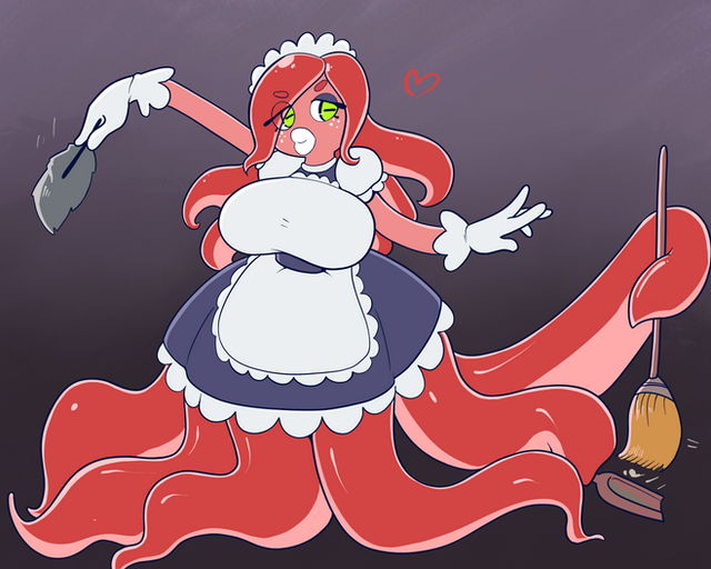 Selene is obsessed with cleaning everything. The maid outfit is custom made for her, and she insists on wearing it instead of the coveralls required by the university’s codes.