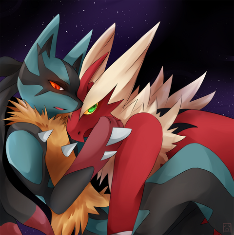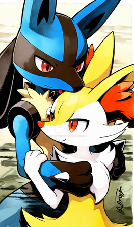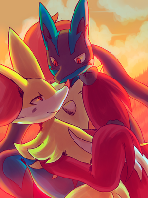 Mega Lucario and DelphoxΒ (c) Pokemon, Nintendo