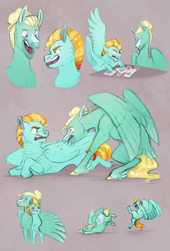 Sorry just saw this! The orange noodle's design is a Sunburst/Discord fusion and the far left's design is a next gen of Discord and my first ponysonaΒ on the far right, but I do treat them as my character's kids via magic from Discord and her own abilities.