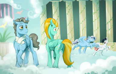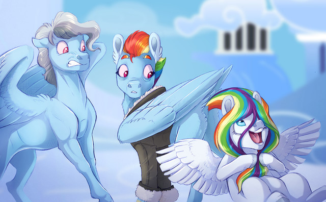 Silver looked up over the wonderbolts training area. She knew that her mother was here somewhere, training for the wonderbolts next show.Quickly she spotted her mothers trademark raninbow trail and dashed through the sky to get to her.