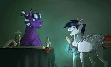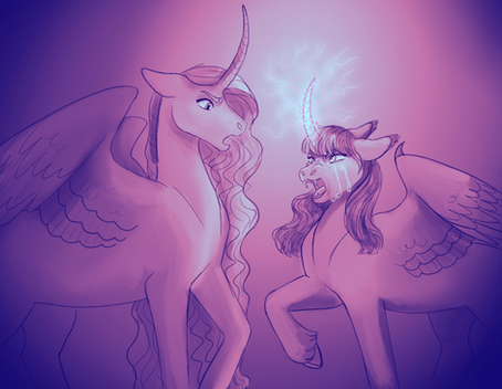 Awesome pic! The anatomy in this looks great. I love the way you incorporate realistic horse anatomy in your pony pics. Their expressions and poses say so much about what's happening here. Things are getting real now! What's gonna happen next? Does Inkwell really think he can keep his cousin's body for himself, or is there more to what he's planning to do now that he has access to Ripper's magic? Inkwell's gone too far now, and there's no way this isn't gonna backfire on him in some way. Can't wait until the next part!