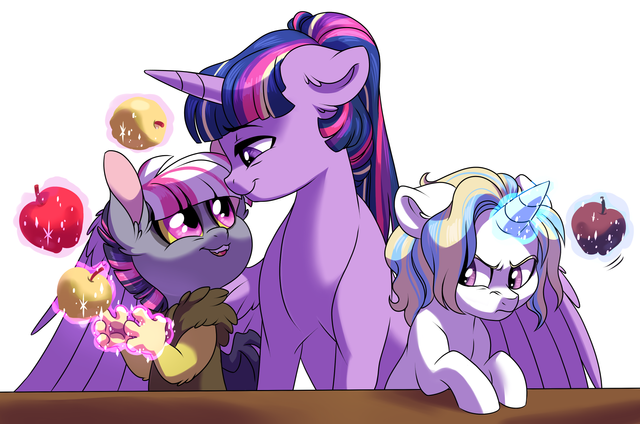 Growing up it was very uncertain weither or not Love Letter had any sort of magical abilities. She had a horn in her forehead sure but it was very different from any normal unicorn horn. With her looking a lot like her dad it was unsure how much pony traits she would end up showing at all.Twilight made sure to tell her not to be sad or dissapointed if it turned out she wouldn't be able to do magic, or get a cutiemark for that matter, like normal ponies. Love Letter didn't see it as too big of a deal when she was a kid but it made a part of her always feel a bit detached from the rest of her family. This made the day when her magic finally kicked into gear all the better, as both Love Letter and Twilight got extatic over her new found powers.