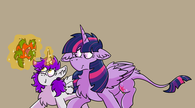 No dialouge as there really isn't any dialoge needed. Love Letter accidentally triggered her magic by trying to catch a falling pear, yelled for momma Twilight and the both of them cheered for hours afterwards.