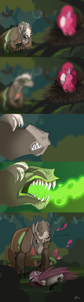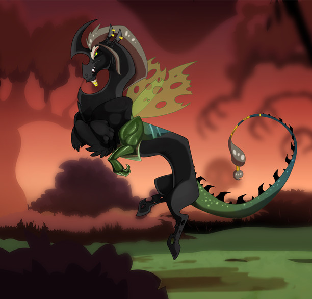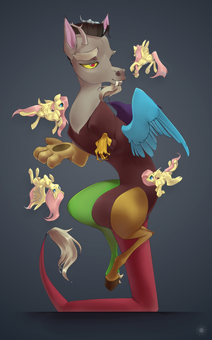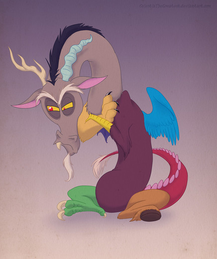 PREV NEXTA couple of days after his visit to Fluttershy Discord started feeling funny. To his horror an hour later he was the "proud father" of 5 changeling eggs. 4 of them having been cracked and 1 that stood out at almost twice the sixe of the others.
