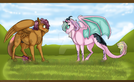 Love Letter had felt her little heart pounding from the moment she laid eyes on him, he was simply stunning. Not only was there finally another hybrid in the school made up of only ponies, but he was also seemed to be such cool guy.