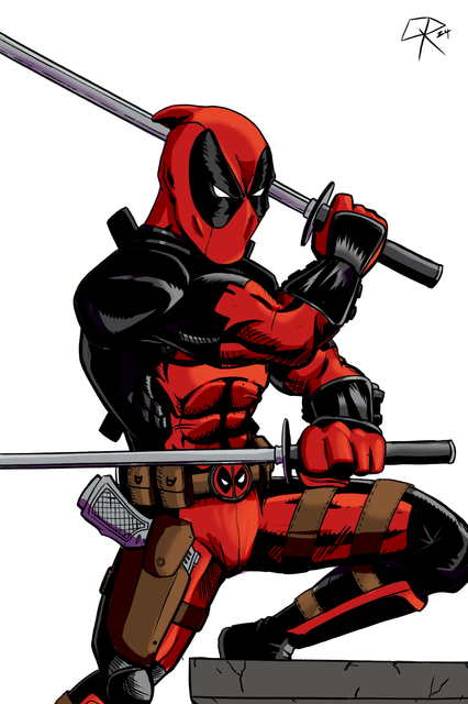 Finally! After two years of working on different characters for my portfolio I finally caved in and finished one character I've been meaning to do even before I began! I opted on building up my portfolio first, learning more and more techniques so that when I finally did him, he'd come out the right way and be a piece deserving the character. Now without further ado, is the Merc with the Mouth himself, Deadpool!Deadpool has always been one character I just love to draw or doodle, and it's his diverse character that makes him so fun to depict in every way possible. Wade is unique in a sense that he can pull off both comedic and badass looks, and for this piece I opted to go for the latter with a dynamic pose and both katanas unsheathed and ready for some katana-rama action. I initially had six different sets of arms to choose from, and I had to narrow it down to choose the best combination of them all. It's also a wonder that this is my first piece with a sword, and it's mind-boggling honestly! I think I'll work on more sword-wielding characters in the near future...