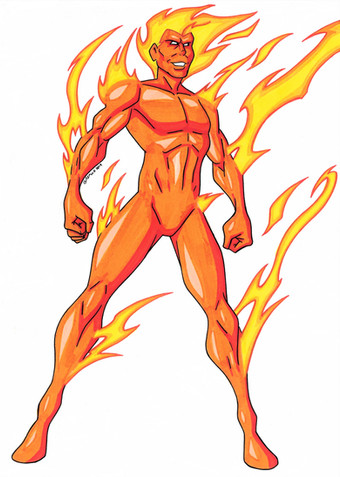 This was a piece that I had a lot of trouble in especially after a long run of artist's block, but I'm glad I was able to turn up and do well in the final outcome. I'm really proud of how he came out and how he really does look like he's in flames! I hope you guys think this is hot! That's two down from the Fantastic Four and two to go! Flame on!!