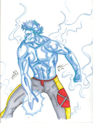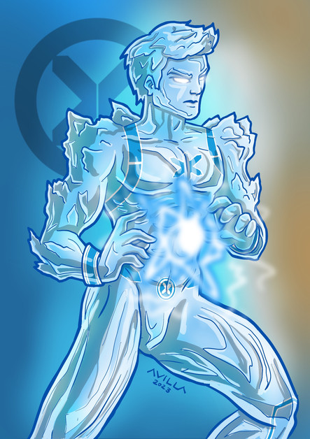 For Iceman, the obvious challenge was making him look like he's made of ice, and I had a lot of thinking to do to figure out how to do it. I managed to create his icy look (inspired by the look of his Marvel Legends figure) by adding on blue inks instead of the traditional black, and adding about 4 different layers of brushes to mix and match all those icy features. I initially wanted him to look translucent, but I realized it'll just look dumb because of the white backgrounds I use, so I opted against that in the end.For his look, I wanted to show his fun and comedic side, hence the laughing facial expression and his pose sliding down his trademark ice slide. The ice slide was something I had a difficult time doing, and what I ended up with is something I just threw on there without putting much into it.