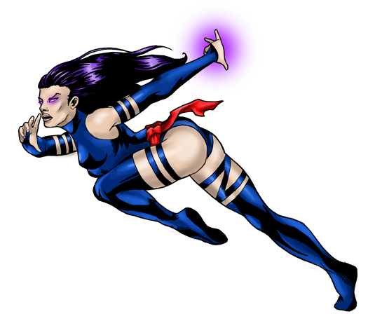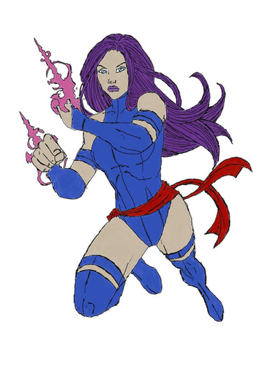 I noticed I've only done one female character so far so I decided to try another one to see if I've improved. For Psylocke, I wanted to do a natural pose instead of something overly sexual. She's probably the one of the most overly sexualized female characters out there and I wanted to keep things simple but still sexy. The pose is reminiscent of her battle stance in the Marvel vs. Capcom series, though I only noticed that after I finished her!For the costume its the usual favourite outfit, inspired by Jim Lee's ninja outfit design during the 90's. The face was very difficult yet again because I'm not accustomed to females yet, but I'm glad I was able to pull off a look and make her look distinctly Asian too. I wanted to style her hair the way Jim Lee always used to draw her with her hair swept all to one side, and I'm happy with the way it turned out in this piece.