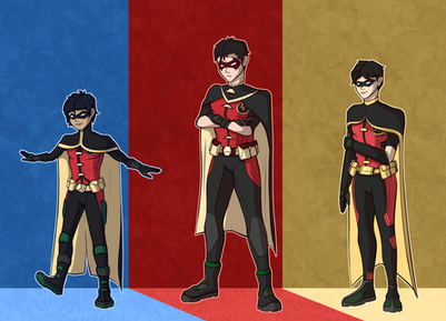 I think this art is amazing.Β I notice that you've moved the costumes around a bit, jason is wearing Tim's and Tim is wearing Dick's from Young Justice but these changes work in showing them moving from old to modern.