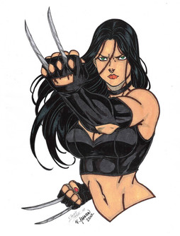 I've been taking in requests for a while now, and I admit the list has been piling up with a lot of names that I really want to work on, but no name popped up more often than of Laura Kinney, X-23. I first met Laura back in the X-Men Evolution cartoon series, and she's gone a long way from there, appearing in Young X-Men and then to X-Force, and it's no wonder how much of a fan favourite she is.I opted to depict her in her X-Force outfit, which I think is so badass with the tiger stripes that resemble Wolverine's but in black and grey, and while I do love her own traditional uniform, this was too cool to pass up. I needed to draw her slightly thinner and smaller since she's still a teenager, and I think I was able to do that with her body structure. I didn't want to depict her in a static pose, and I really tried my best to make sure she looked really dynamic, which resulted in this jumping action pose which I really liked.