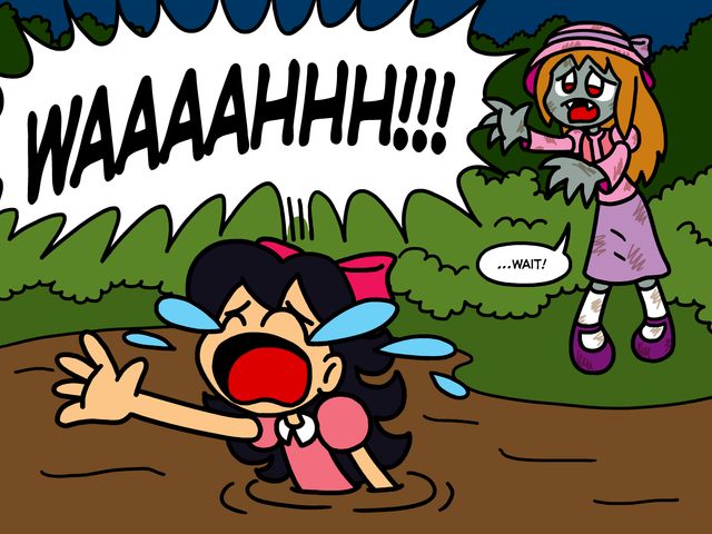 Art trade with NintendoSuperMario15 Volt should´ve known not to walk alone on that mysterious marshy land marked with death signs. She struggled fast, sinking all the way up to her neck and on a tired state, she conjured her phantasm self in an attempt to find help