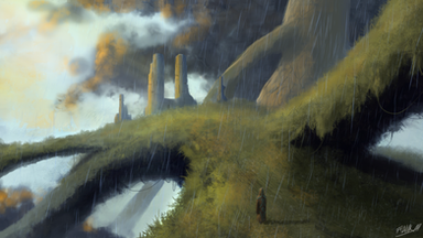 This seem awesome. I really like the peaceful atmosphere of the trees, while the background with cold huge walls makes me feel a bit frighteden. I don't know if this was the purpose, but it works.x) And thanks for faving me, it's a pleasure when you have such a beautiful art.^^