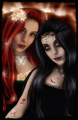No blood... I'm utterly dissapointed Well, it's a shame she dies so fast... the hair's great, no wonder you wouldn't like to draw it again ^^ Anyway, great pic, great bg and colour scheme