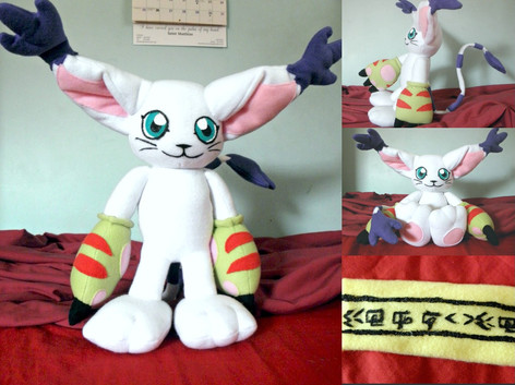 I'm really excited about this one...Angemon is the first humanoid plush from the new, improved pattern I drafted from all of your suggestions! I decided to make his legs extra long and skinny in this case, because Angemon himself is pretty lanky. He stands about 18 inches tall.