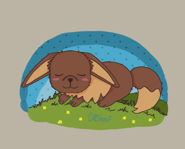 A sleeping eeveeSpent way more time on coloring and shading/lighting. Also sent more time on the background