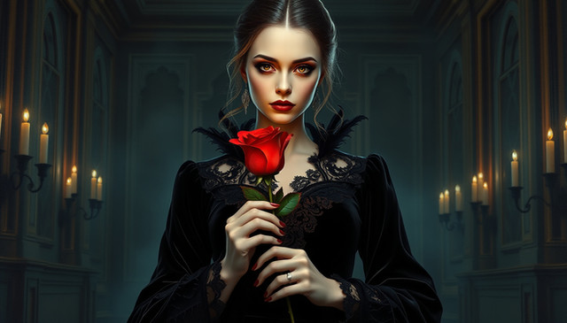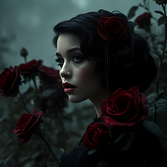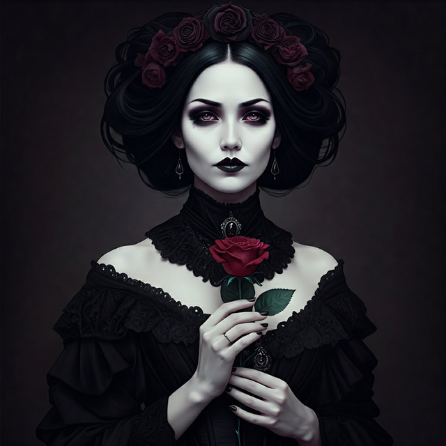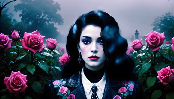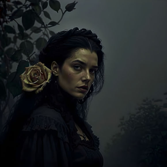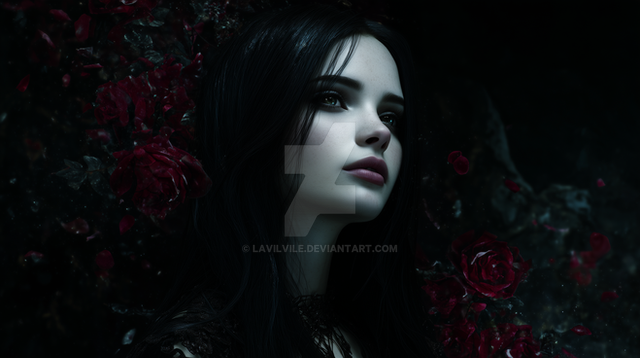 #digitalart #portrait #digitalpainting #gothic #portraitgirl #characterdesign #beauty #fantasyart #darkroses #floral #garden #landscape #moody #mysterious #digitalartists #aiartists #vintagevigesart