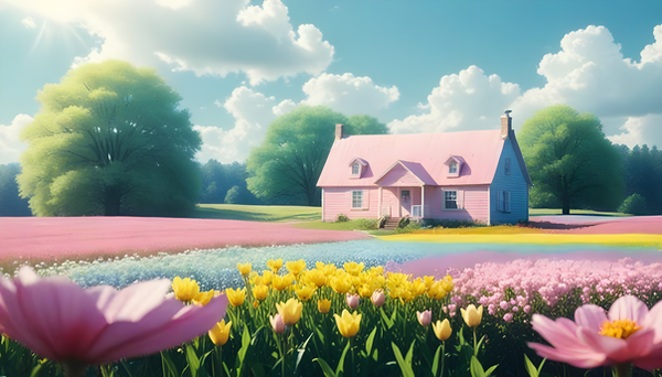 #afternoon #april #blooms #cottage #countryside #digitalart #digitalartist #flowers #home #nostalgic #pink #portrait #spring #sunny #aiart #cottagecore #aiartcommunity #aiartists #vintagevibesart