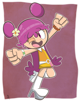 She vaguely reminds me of Baby Doll from Batman The Animated series with that dress and hair.