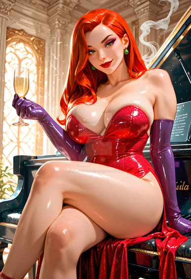 #animeinspired #artwork #beautifuleyes #deviantart #elegant #femmefatale #glamour #jessicarabbit #masterpiece #reddress #redhead #seductive #semirealistic #sexy #vintagestyle #woman #artstation #hollywoodnoir #jessicarabbitfanart #jessicarabbitsexy #cinematiclighting #perfectanatomy #ultradetailed