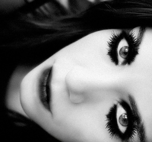 forse un pochino forte come high key, mi piacerebbe vedere seppur minimi dettagli nel viso, almeno qualche tratto del naso. ottimo il trucco forte in abbinamento con la sovraesposizione, il risultato Γ¨ di forte esaltazione degli occhi