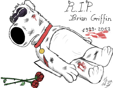 Spoilers: In Family Guy, Brian actually dies... :/ how sad.Β
