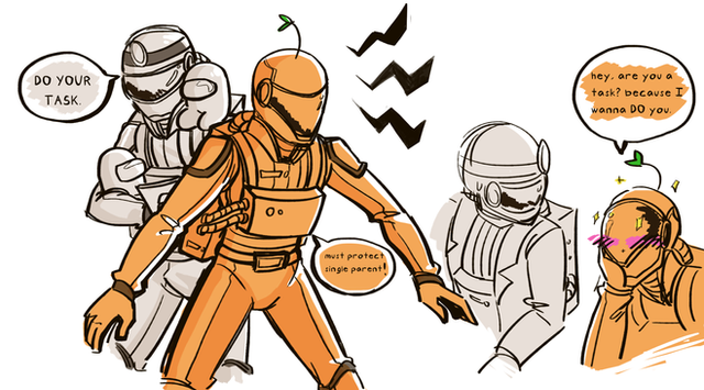 Good Ol' Bodyguard, "keeping a watch" of the other people in Electrical while his contract does her tasks.