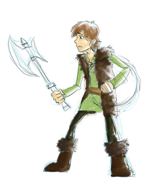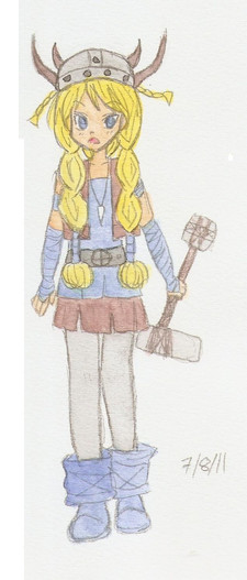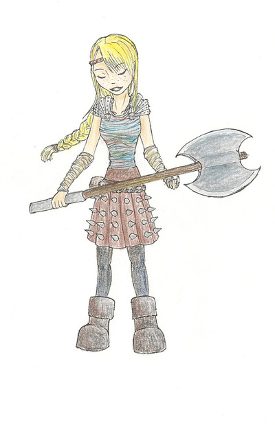 a little viking warrior.¬¬ the idea did come from watching "how to train your dragon" (awsome film, yes i know im 16 but its still awsome even if it is probably intended for younger kids) mostly because of astrid. it was origionally done in biro pen and then digitally coloured because i was bored and had nothing else to do really...