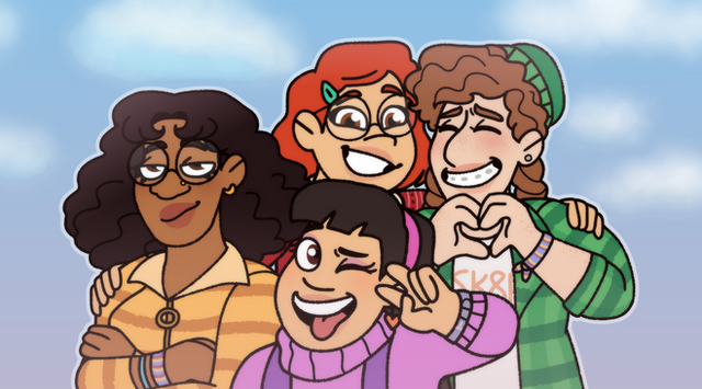 Mei and her friends hanging out enjoying Slurpees (also, Priyaβs got brain freeze)Related content