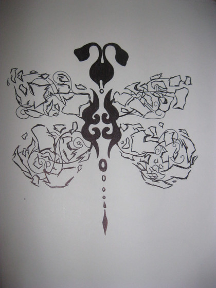 I am always working on dragonfly designs. I don't think I would get this particular one inked but I do like it nonetheless.I've had a thing for dragonflies most of my life. I know enough to know that technically what I'm talking about aren't actually dragonflies but damselflies. Most people refer to both as dragonflies (which they are actually both allowed to be called) and no one ever knows what I'm talking about when I say damselfly so dragonfly it is