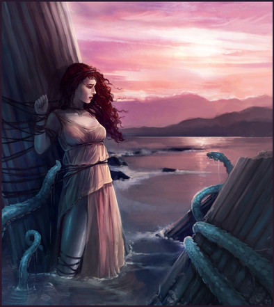 In Greek mythology Andromeda was chained to a rock as a sacrifice to the sea-monster Ketos, as a punishment to her mother, who boasted that she was more beautiful than the nymph-daughters of the God Nereus. She was saved by Perseus in the nick of timeMade for 's deviation challenge: [link]