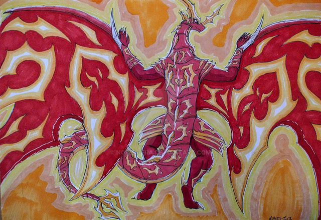 ok so, Yzadreth is my last dragonborn, she became cybertronian and she can still use her shouts, what do you suppose happens when she uses the shout "dragon aspect"?my friend RevenantsDusk did a sketch of a predacon and thought it sort of looked similar to Firefly/Yzadreth and so I fiddled around with the linework and colored it and she turned into this.