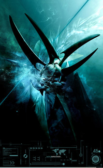 u need a ready render......the u need the filter "KPT-Hyper-Tiling" use this filter on the render,then i use the filter"eyecandy4000-motion trail" on the right side of the middle thingy...then a lil brushing.....bingo