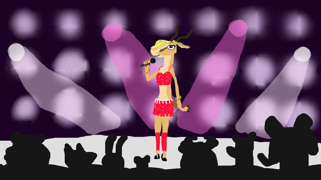 “Nick and Judy joining Gazelle’s entourage with Nick joining the tiger dancers (even wearing their shorts) and Judy being a sidekick singer for Gazelle (dressed like Gazelle too)”