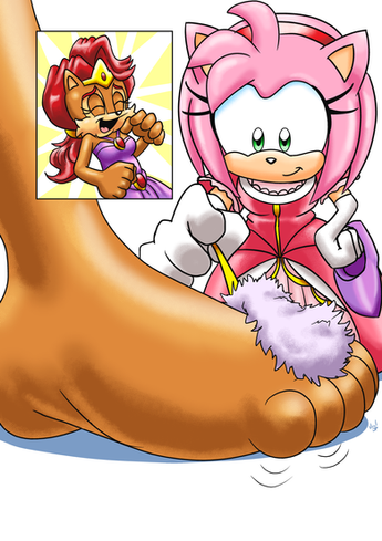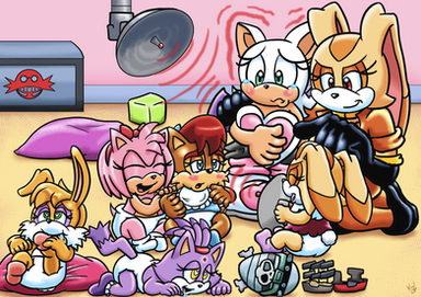 This commission is from sonic8005. In the pic, Sally is tickling Sonia's sides while Sonia is laughing with tears showing.