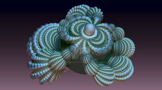 Created with Mandelbulb3Dv18This is a tweak from one of the many pongs between batjorge ( Jorge Abalo) and undead-academy (Patty), on DA. thanks for sharing you params,