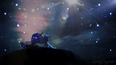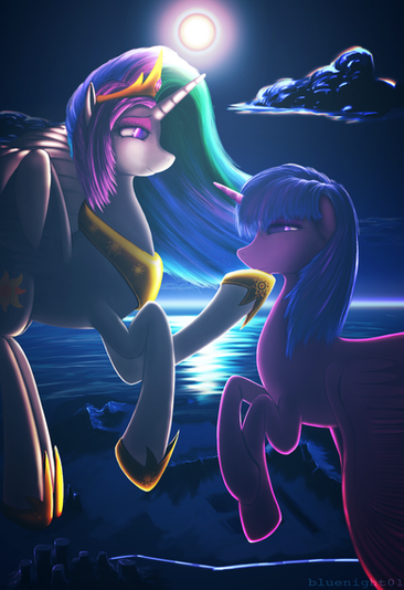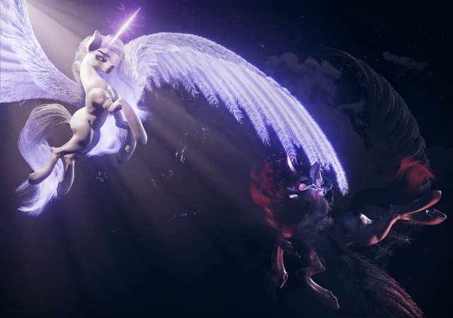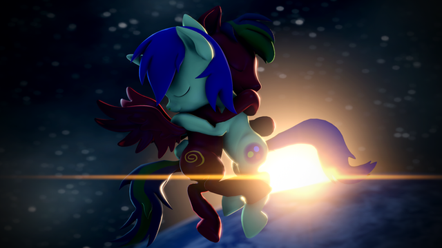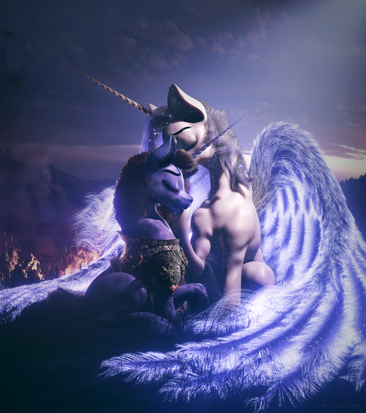 They gave Marcellus one final squeeze. He was amazed at just how soft the Aurum was. He felt serene, warm, happy, just being in their embrace. He felt as though every pain in his soul was cleansed from him. The spirit lifted his chin with their hoof, then planted a kiss on his forehead.A reworked and remade version of an art piece I made back in early 2020. This scene shows an Aurum showing Marcellus affection after a long day of war and grief. The newly formed and dark city of Moenia Tenebra looms in the distance, in the place of the lost and destroyed city of Valencia. Made with Blender Eevee and Photoshop.