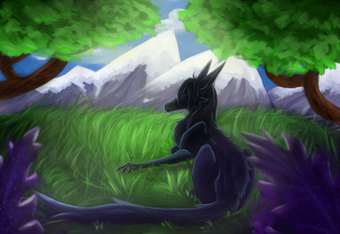 #mountain #oc #wolf #clouds #digitalpainting #field #fox #furry #furryart #fursona #hill #landscape #painting #feralfurry #feralcharacter