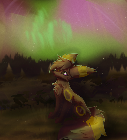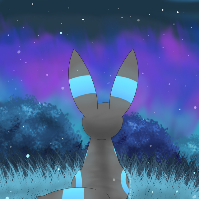 Man alive is this cute! Beautiful night sky, peaceful terrain, adorable Umbreon - simply wonderful.